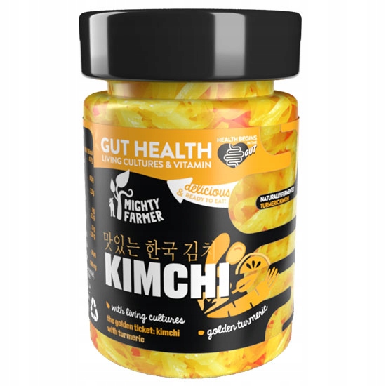 Она имеет прекрасный вкус, усиливает аромат блюд, ценится за низкую калорийность и содержание витаминов С и А, железа и кальция. Кимчи можно есть сырым, в качестве закуски или дополнения к блюдам – например, к мясу или тофу, но оно также является отличным ингредиентом для теплых блюд. Производство: Португалия.Состав: капуста китайская 59%, репа, вода, лук репчатый, ингредиенты: капуста белокочанная 59%, репа, вода, лук репчатый, лук-порей, соль, куркума сушеная 1,4%, чеснок, сахар, имбирь, Bacillus coagulans, антиоксидант: аскорбиновая кислота.