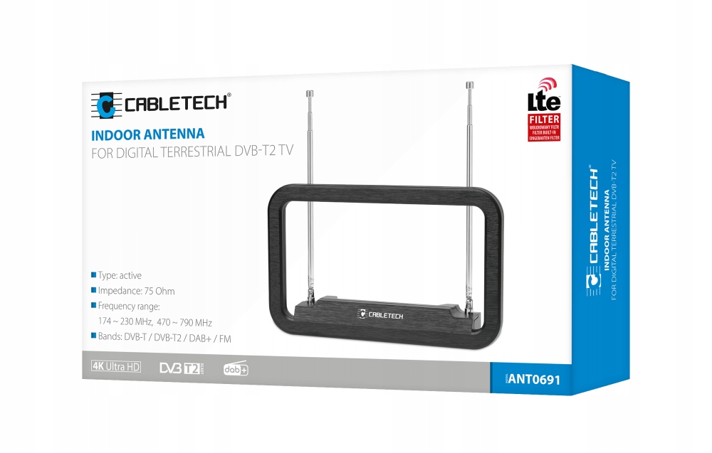 Переход со стандарта DVB-T на DVB-T2, то есть цифровой передачи второго поколения, является не только гарантией лучшего качества просматриваемых каналов, но и необходимость позаботиться о соответствующем оборудовании для их просмотра. Чтобы наслаждаться бесперебойным сигналом в новом стандарте, стоит приобрести соответствующую антенну. Антенна Cabletech DVB-T2 создана для поддержки нового телевизионного стандарта DVB-T2 в вашем доме - она адаптирована для приема каналов в самом высоком разрешении 4K.