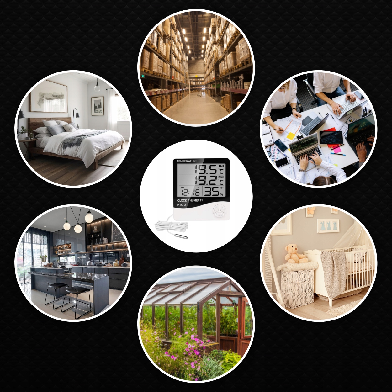 Этот многофункциональный термометр с гигрометром сочетает в себе точное измерение, большой двухзонный экран и удобство использования в любом помещении. Идеально подходит для дома, квартиры, офиса, кладовой, мастерской или детской комнаты.