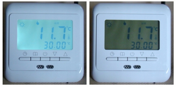 Подсветка может быть включена постоянно или автоматически отключаться через 5 секунд после неиспользования термостата.