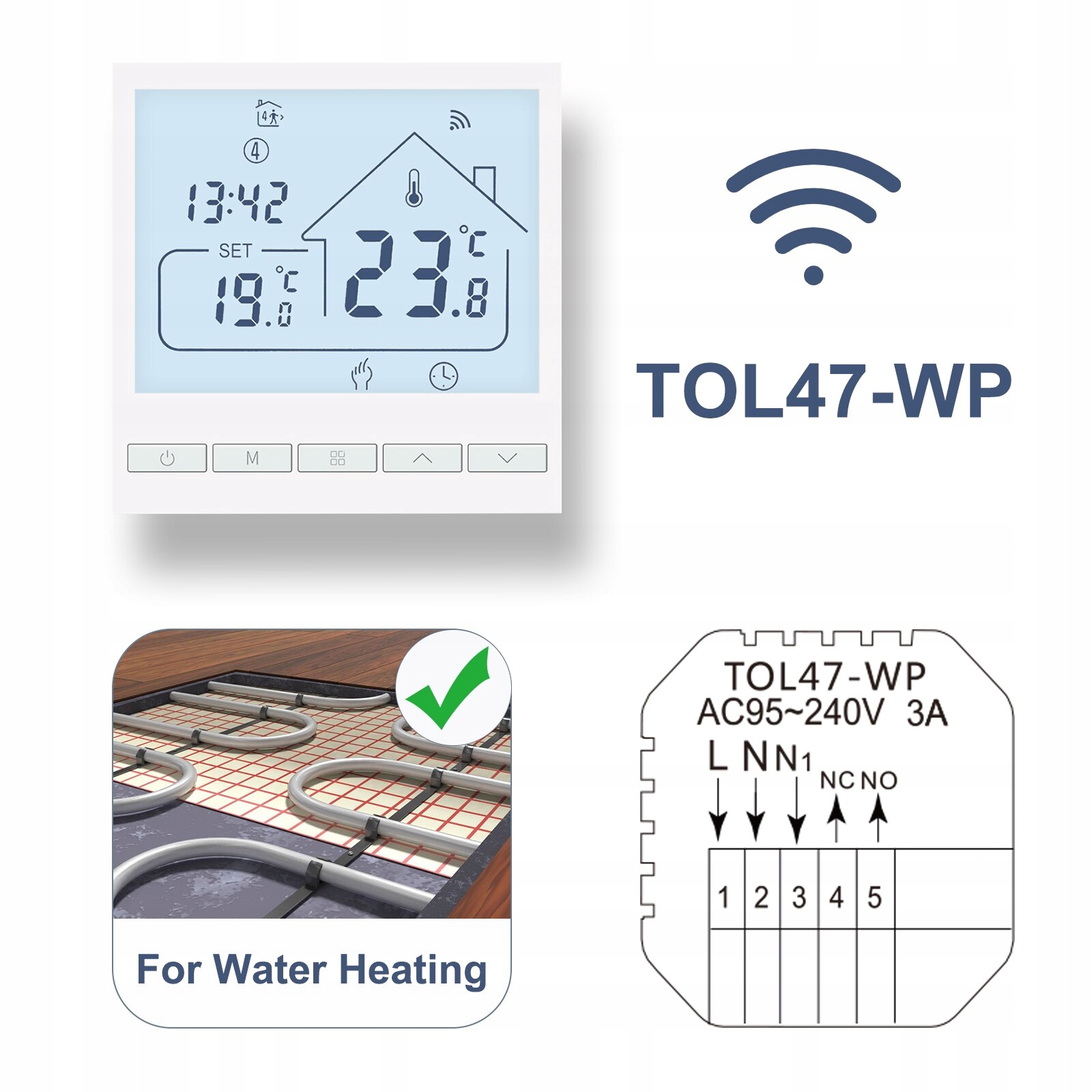 Простое управление и программа использования термостата для водяного теплого пола, термостата, адаптированного для водяного теплого пола, водяных клапанов и систем горячего водоснабжения, напряжение: 100-240 В, 50/60 Гц, максимальная мощность: 3 А.