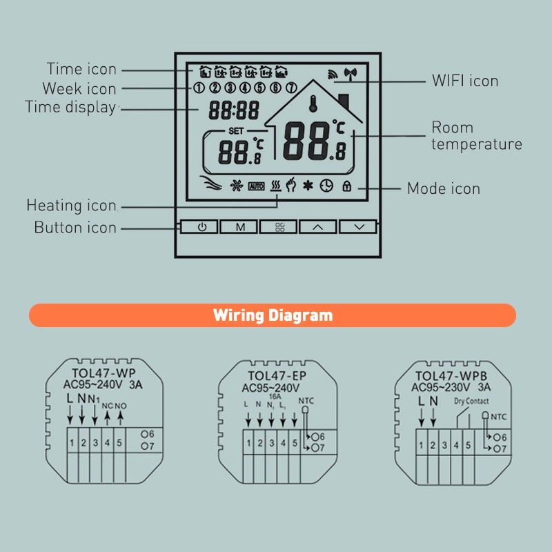 КОМНАТНЫЙ ТЕРМОСТАТ BEOK TOL47WIFI-EP SMART Термостат - Умный дом -