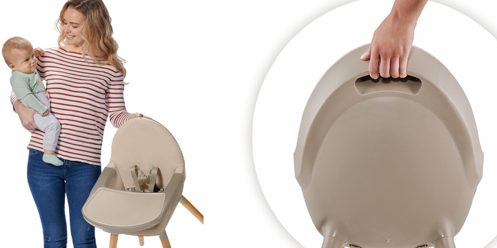 Двойная верхняя часть поддона детского стульчика Kinderkraft Fini 2 позволяет снять верхний слой и удобно постирать его под проточной водой. Это значительно облегчит чистку детского стульчика. Поднос достаточно большой, чтобы вместить первые блюда и закуски вашего малыша.