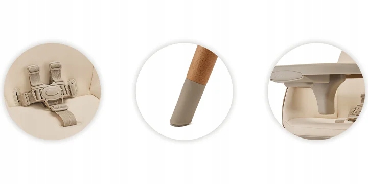Сиденье кресла оснащено 5-точечными ремнями безопасности, длину которых можно регулировать. Дополнительно лоток имеет ограничитель, который не дает ребенку выскользнуть из кресла. Вся конструкция прочная, а противоскользящие накладки на ножках обеспечивают стабилизацию и сцепление с землей.