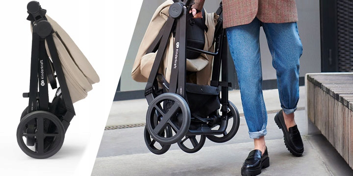 Чтобы сложить коляску, вам понадобится всего одна рука и несколько секунд — Kinderkraft Newly 4in1 складывается с прикрепленным сиденьем быстро и легко. К тому же в сложенном виде он занимает мало места, поэтому идеально подходит для ограниченного пространства.