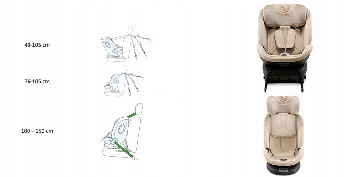 Информация об установке: 40-105 см: назад, isofix + top Tether + внутренние ремни сиденья; 76-105 см: возможность повернуть переднюю часть, isofix + top Tether + внутренние ремни сиденья; 100-150 см: спереди, isofix + автомобильная полоса / только автомобильная полоса.