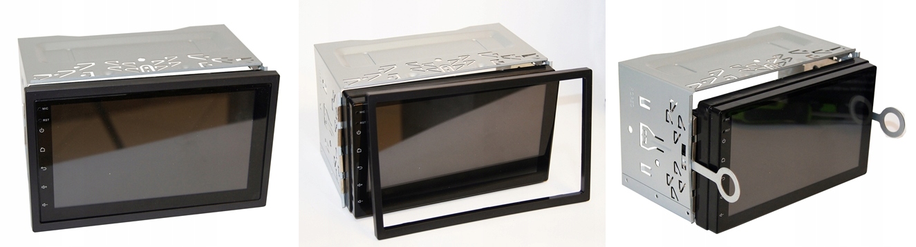 Ниже приведен пример установки на различные плееры (в глубоком корпусе, мелком корпусе и Android-радио) - в мелких радиоприемниках необходимо было увеличить/сделать отверстия в пластинах, чтобы поместилось радио.
