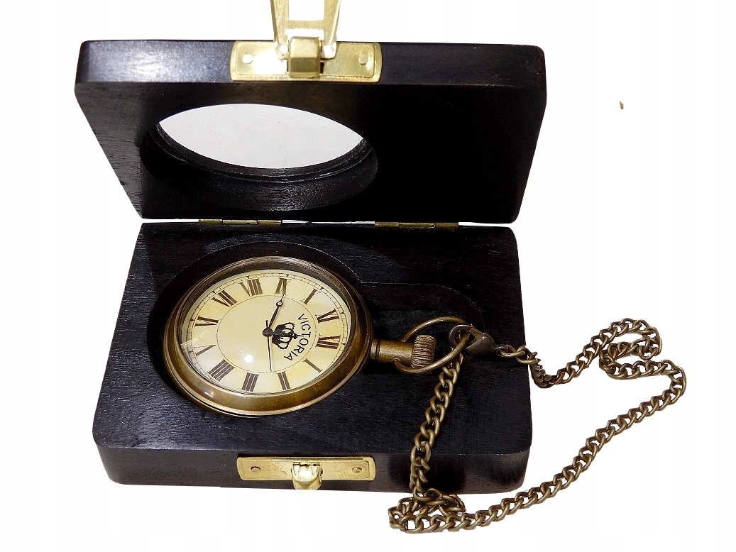 Часы из латуни с шармом в деревянной коробке - реплика часов