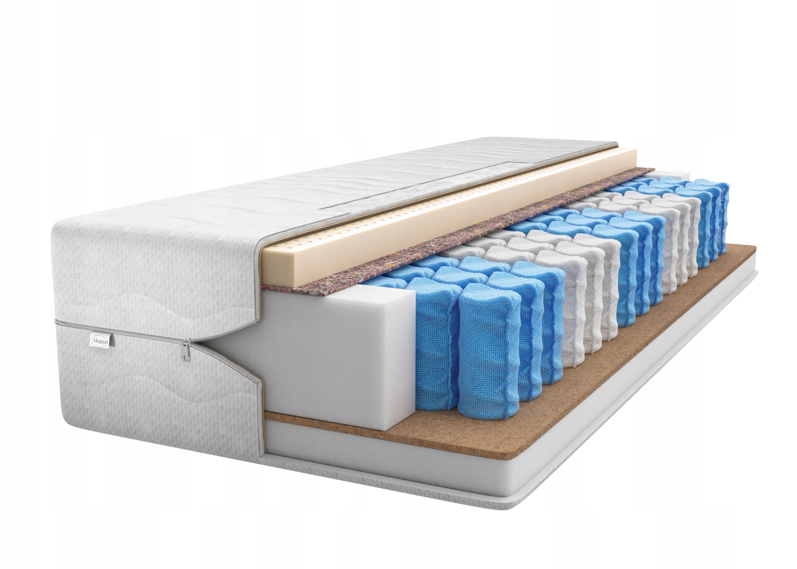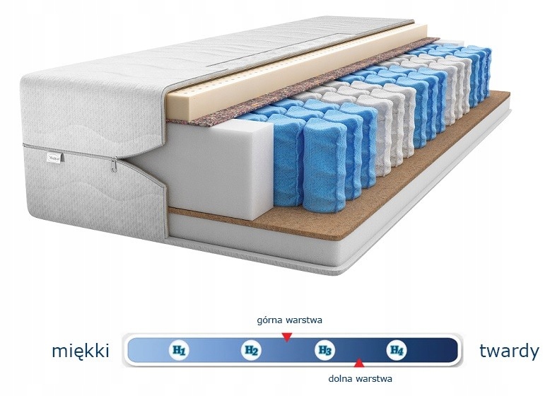 Основным слоем матраса являются карманные пружины, которые благодаря 9 зонах твердости обеспечивают идеальную адаптацию к фигуре пользователя. Каждая пружина находится в отдельном кармане, что позволяет независимой реакции на нагрузку.