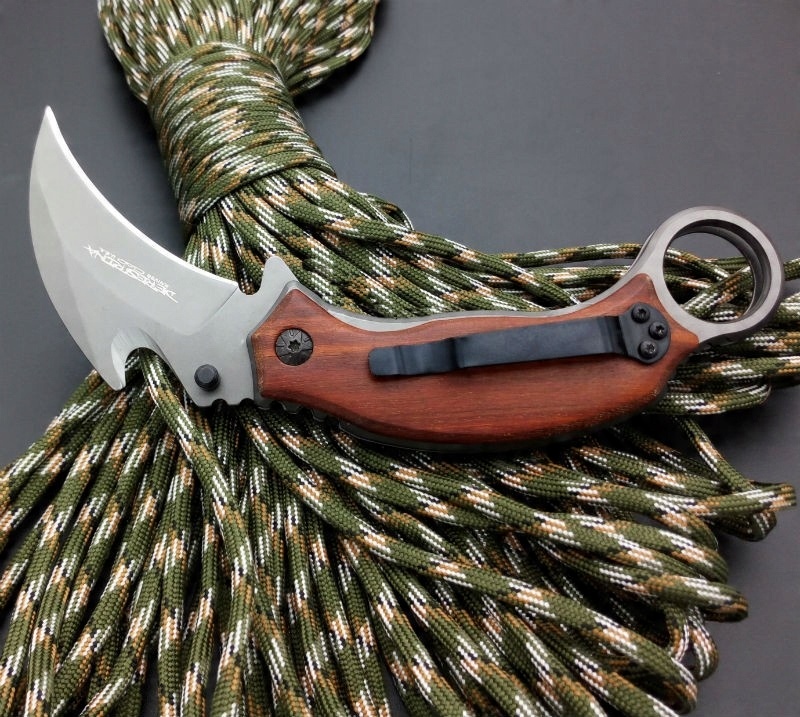 Отличное качество изготовления. Складной нож по образцу индонезийских ножей Carambit, используемых для самообороны.