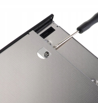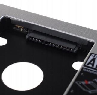 Алюминиевый карман для 2,5-дюймового жесткого/твердотельного диска SATA, установленный в стандартном монтажном месте для станции SATA CD/DVD в корпусе ноутбука.