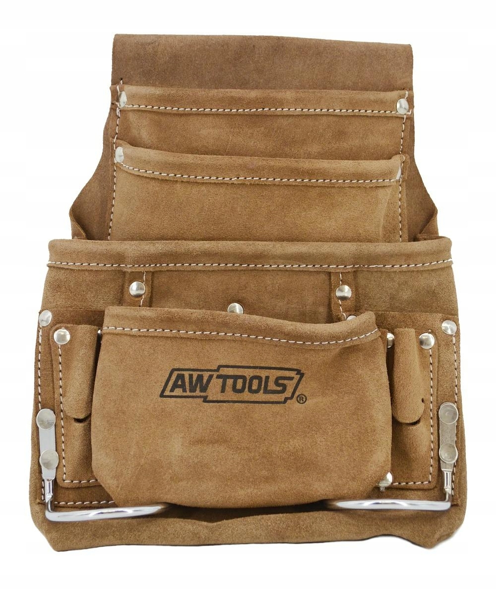 AWTOOLS Кожаный карман для инструментов, 10 отделений, 2 крючка, AW30603