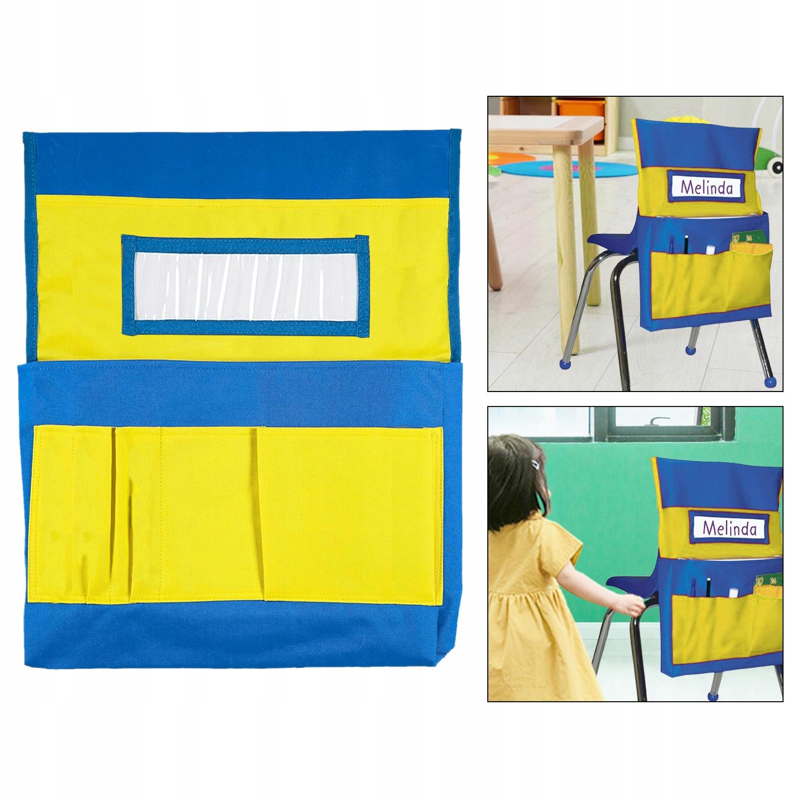Карман на задней части стула с метками с именем карманного мешка в домашний детский сад в детском саду желтый синий
