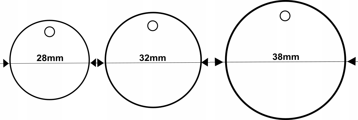 Самые маленькие идентификационные бирки диаметром 28 мм предназначены для маленьких собак и кошек. Размер 32 мм является наиболее универсальным, а для крупных животных мы рекомендуем размер 38 мм.