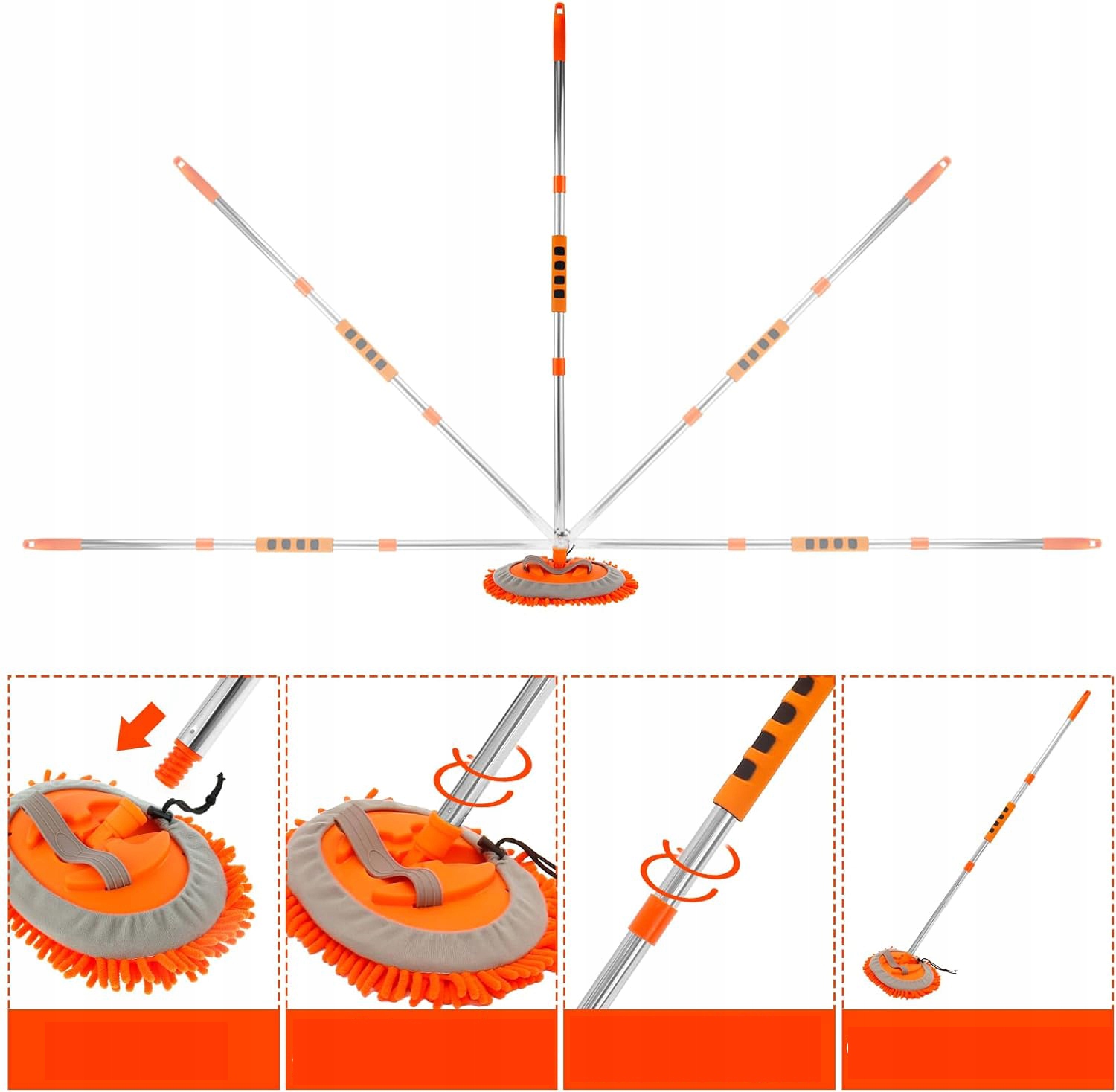 🟢telecopic Design и регулируемая головка швабры 180 градусов делают вас более гибкими при промывании автомобиля и обеспечивает легкую очистку.