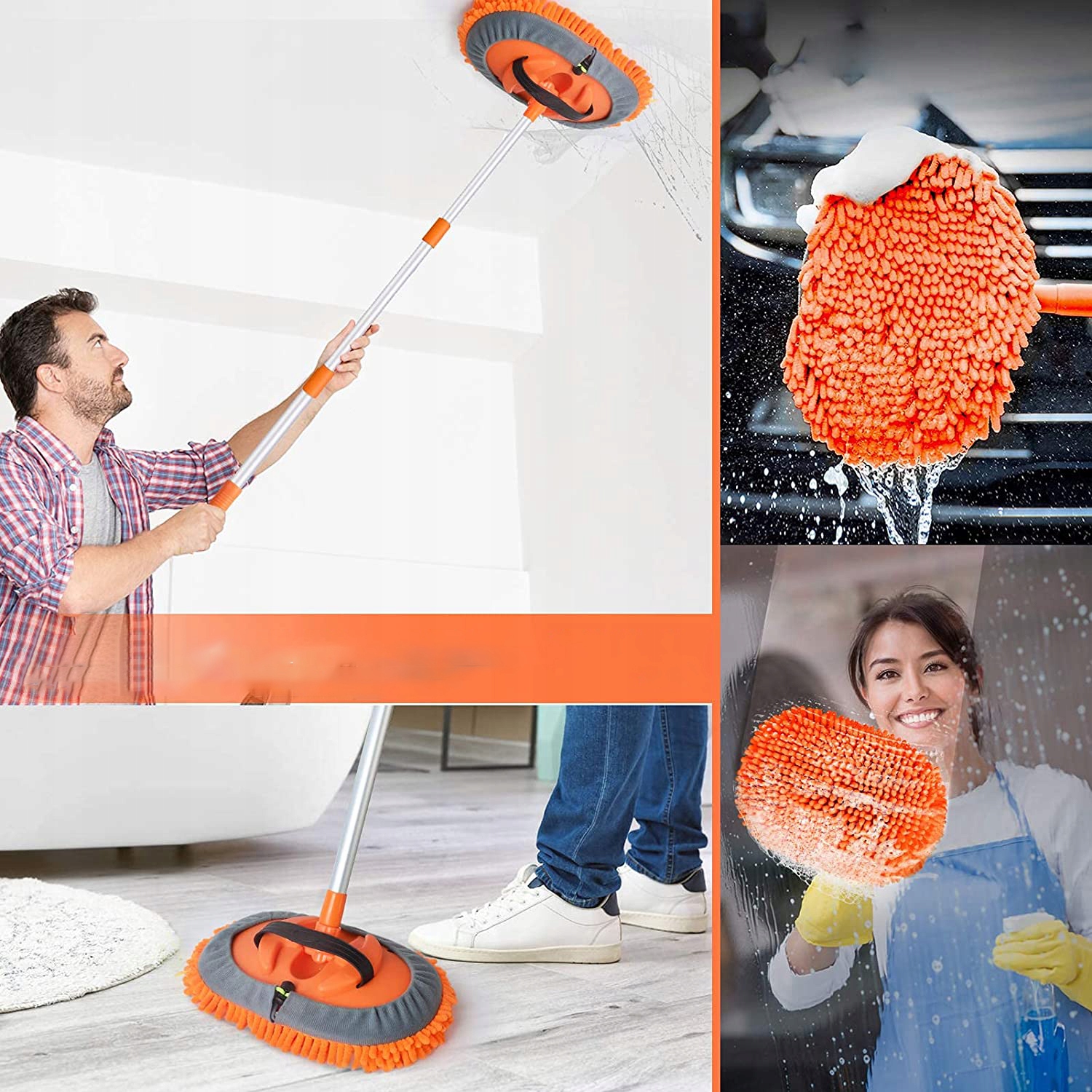 🟢ten doskonły mop do mycia samochodu może skutecznie zaoszczędzić twój czas! MA Silne Właściwości Wchłaniania Wody I Odkażania, Usuwa Kurz I Brud Kilkoma Ruchami.