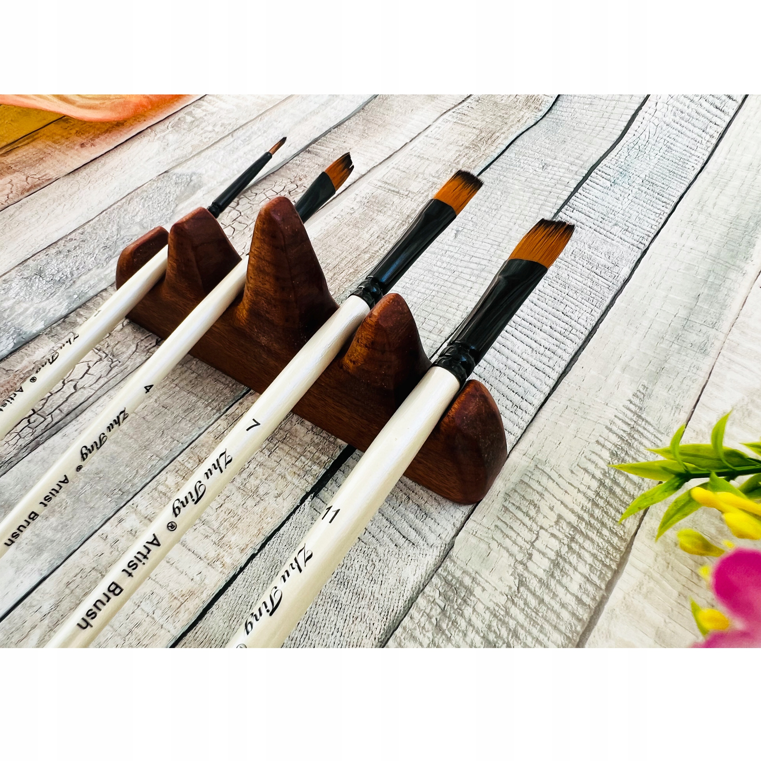 Фотографии кистей и подставки не подвергались модификации и сделаны нашей компанией АР-КОМ. Подставка изготовлена из дерева, поэтому цвет может незначительно отличаться