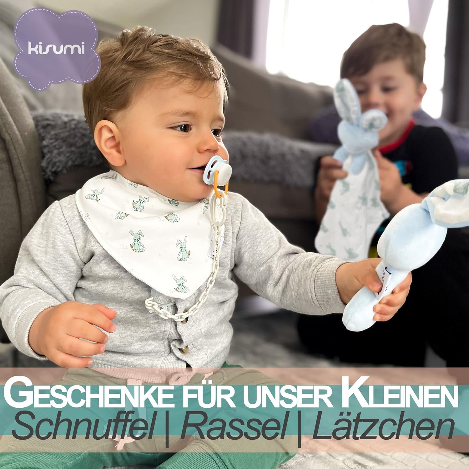 - Кисуми – включает поздравительную открытку – все, что вам нужно, включено. Высококачественный подарок с плюшевыми игрушками и нагрудниками, созданными с любовью, для детей от 0 месяцев до 3 лет. Благодаря этому вы получите очень индивидуальный подарок для детей.