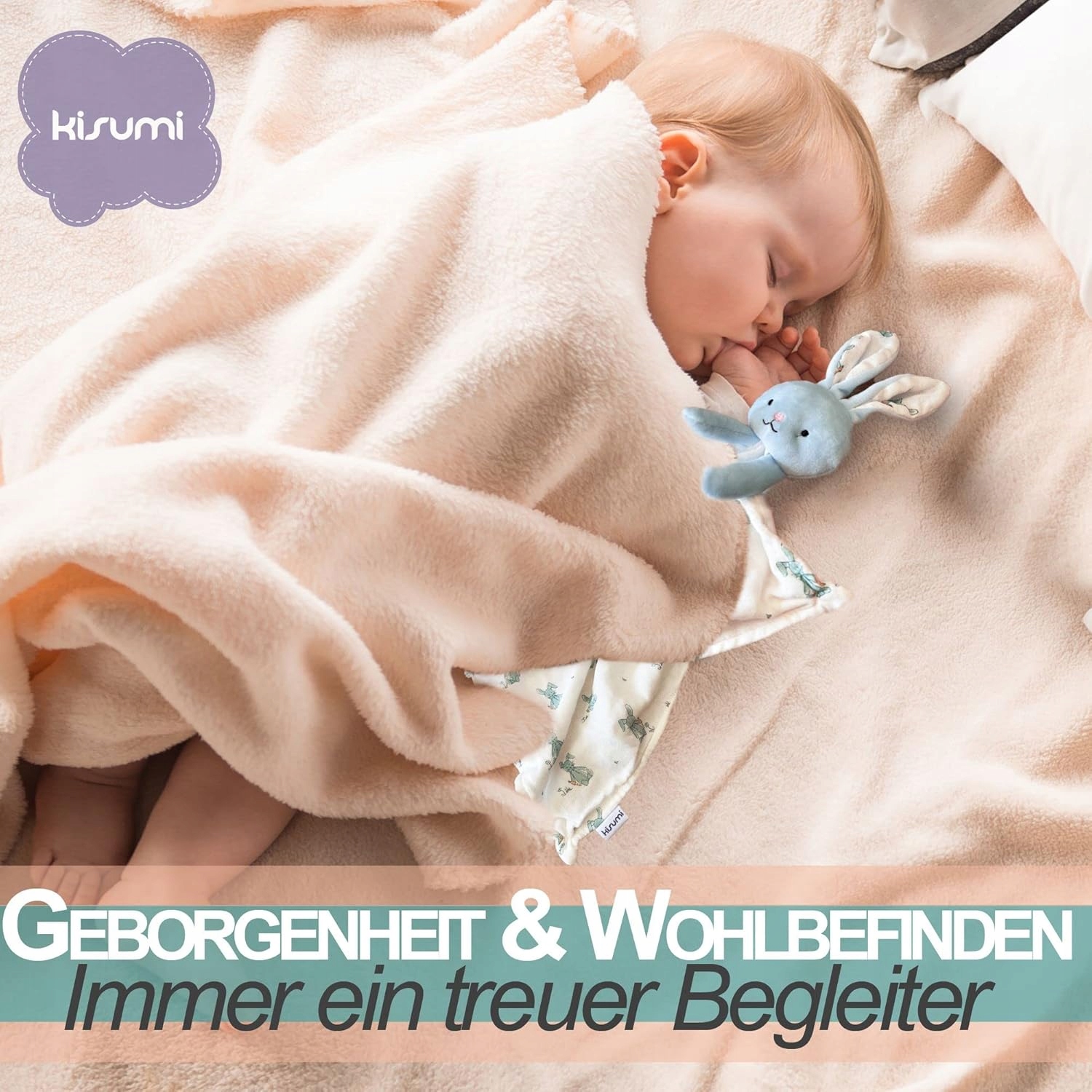 - Кисуми - верный компаньон, уютное одеяло с длинными ушами, которое можно жевать, кроличья погремушка, с которой можно играть, которую очень легко держать в руках, нагрудник на всякий случай. во время еды или питья что-то идет не так.
