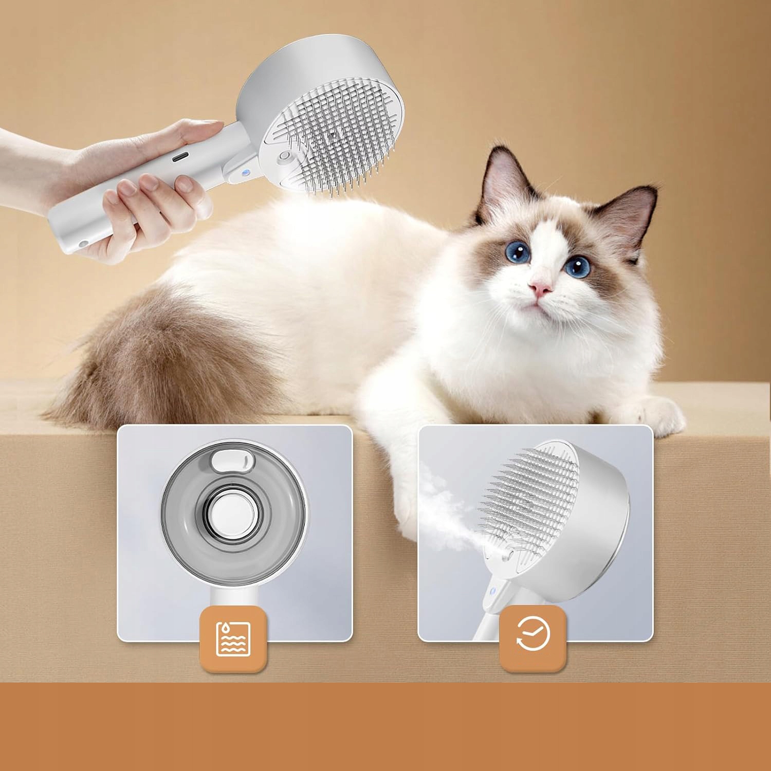 минуты непрерывного использования для предотвращения сухих ожогов. Просто нажмите кнопку, чтобы возобновить распыление. Чтобы избежать чрезмерного смачивания, слегка укусить пальто кошки в течение 10-30 секунд, затем очистите и повторите, если это необходимо, чтобы получить оптимальные результаты. Эта безопасная и надежная кисть для кошек является идеальным выбором для владельцев домашних животных.