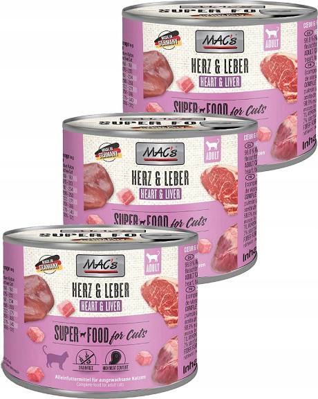 Mac's — корм в виде вкусного паштета, специально созданный с учетом пищевых потребностей взрослых кошек. Корм не содержит кусков комбинированного мяса, костей и животной муки, а его высокое качество обеспечивается тщательно отобранным, лучшим мясом из сердец, печени и легких.