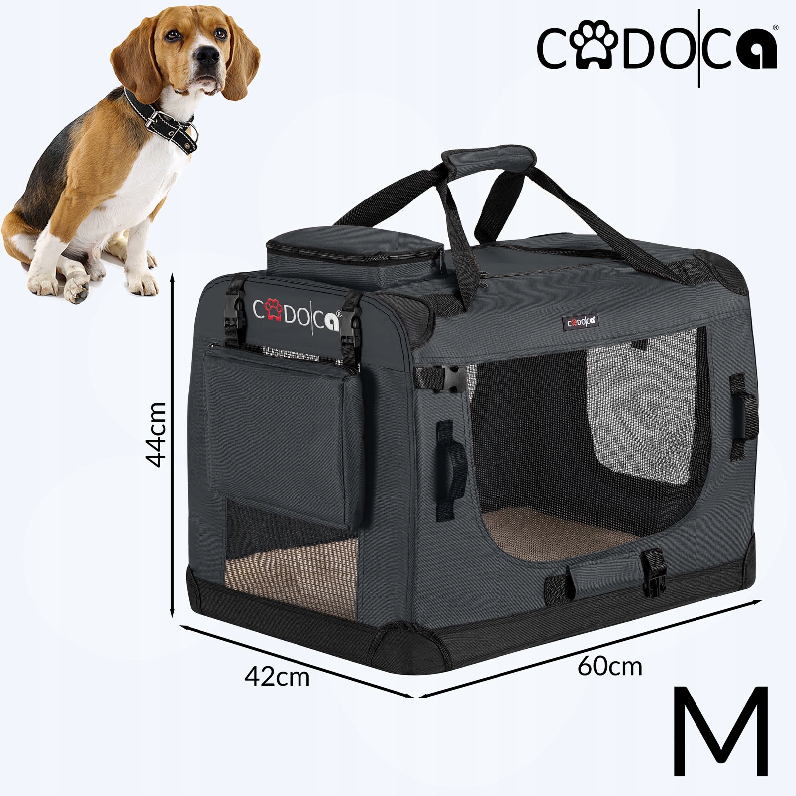Складная переноска размера M идеально подходит для небольших собак и кошек.