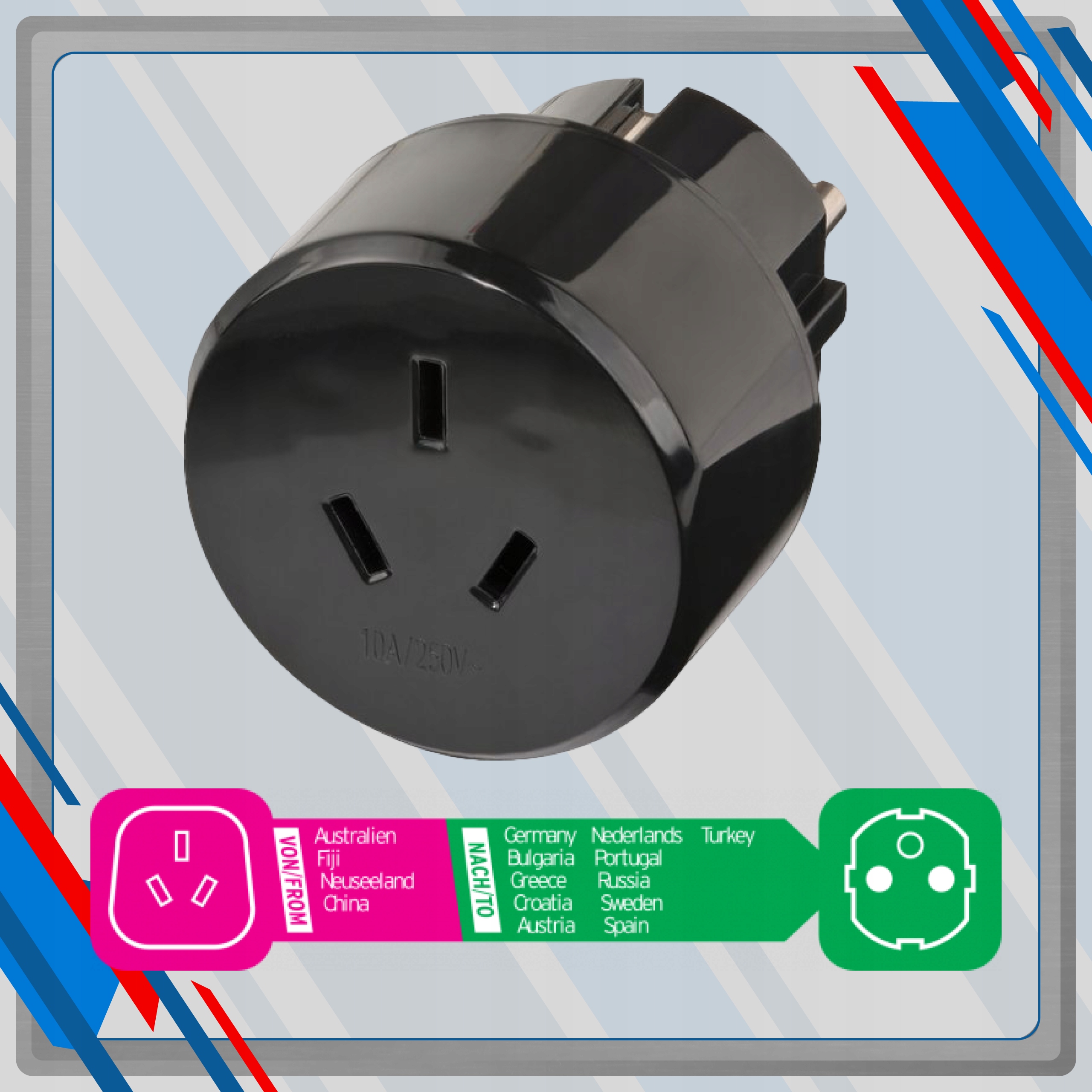 АДАПТЕР ДЛЯ ПУТЕШЕСТВИЯ КИТАЙ, АВСТРАЛИЯ С ЗАЗЕМЛЕНИЕМ