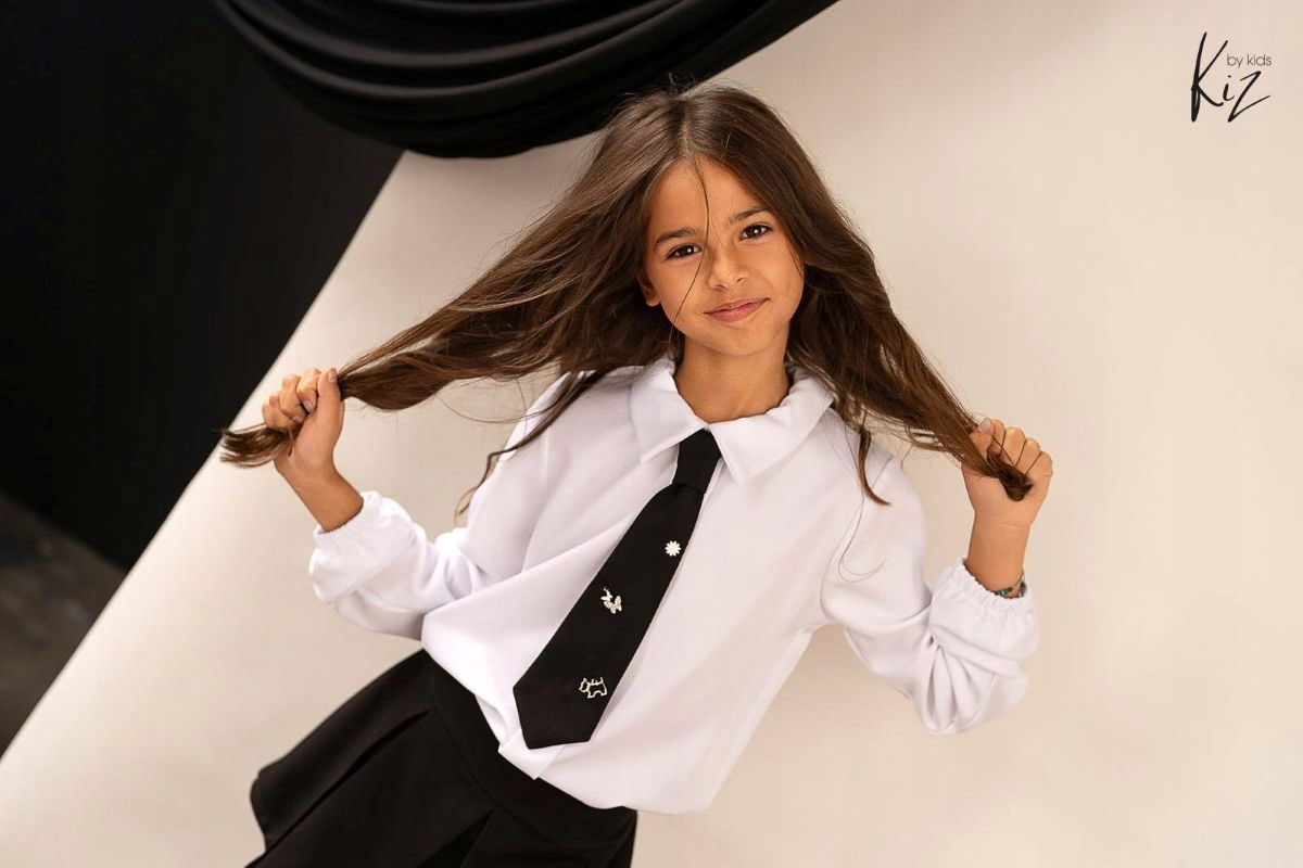 KIZ БЕЛАЯ ТОРЖЕСТВЕННАЯ БЛУЗКА/РУБАШКА С ДЛИННЫМ РУКАВОМ И ГАЛСТКОМ 146