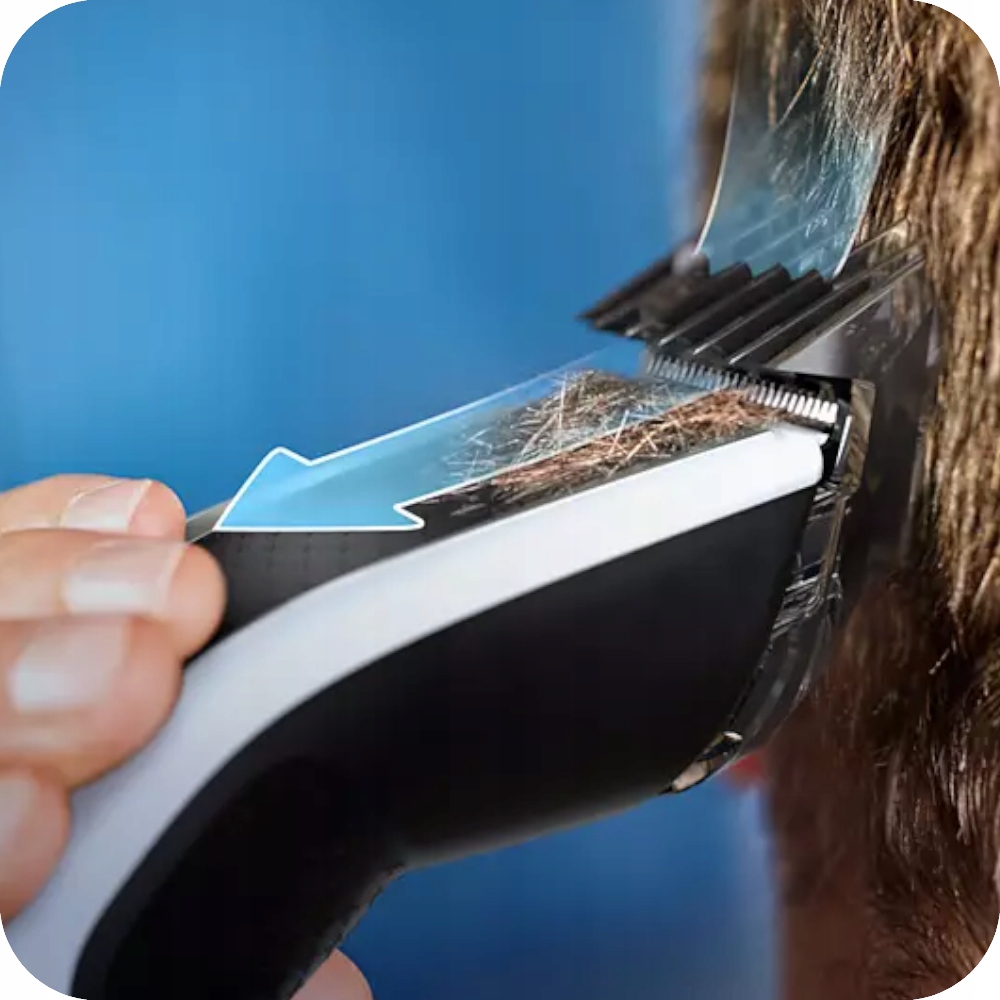 Устали от застревающих машинок для стрижки? Вот решение — Philips с инновационной системой удаления волос с лезвий. Это не только удобно, но и эффективно, поскольку данная технология ускоряет процесс резки в два раза. Вам больше не придется беспокоиться о перерывах в очистке лезвий. Эта система делает стрижку эффективной и быстрой, экономя ваше драгоценное время. Теперь стрижка дома будет так же эффективна, как и у профессионала!