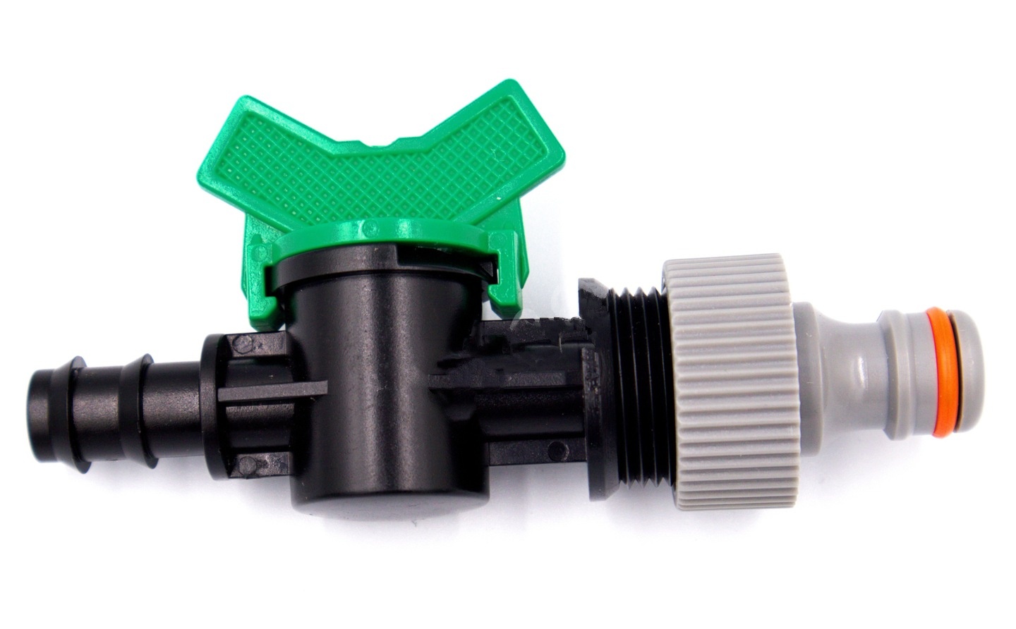 Клапан с быстродействующим соединителем позволяет подключить оросительную линию или садовую оросительную трубу из обычного шланга 1/2, 5/8, 3/4, 1".