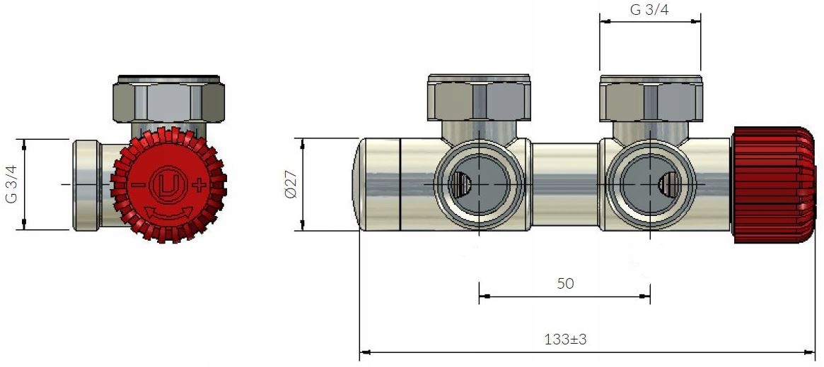 < р>1. Термостатическая головка Prestige3. Термостатический клапан справа и запорный клапан слева