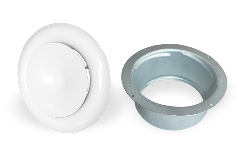 Приточные диффузоры с порошковым покрытием белого цвета представляют собой элегантное завершение приточных отверстий в установках распределения теплого воздуха и приточной вентиляции. Они обеспечивают плавное регулирование потока воздуха благодаря вращающейся пластине. Кроме того, их исключительно легко установить, поскольку все, что вам нужно сделать, это стационарно закрепить раму в монтажном проеме, подсоединить к ней вентиляционный канал, а затем вкрутить в него диффузор. Анемостат поставляется в комплекте с рамкой-фланцем для крепления.