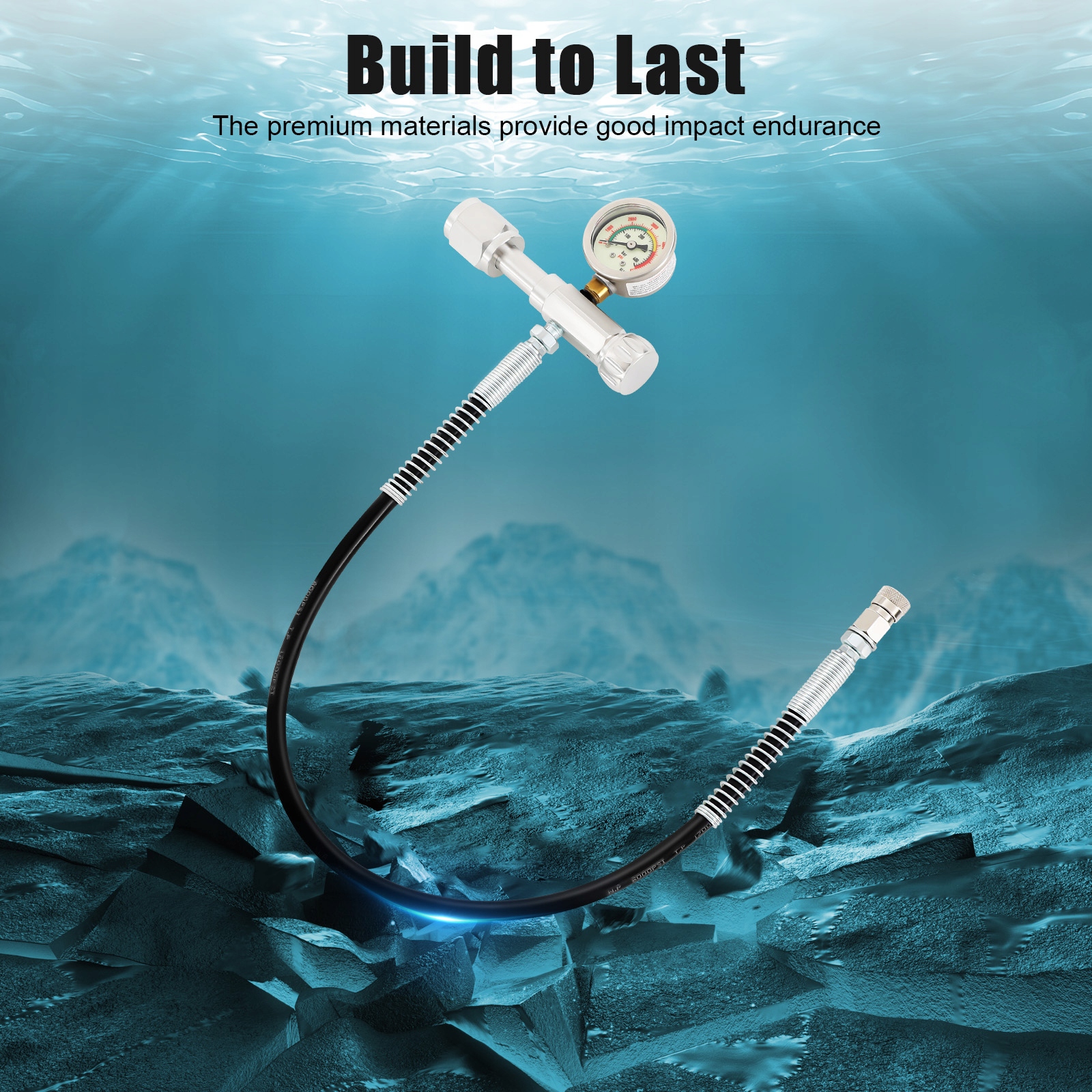 Этот адаптер для заправки сжатым воздухом обеспечивает превосходную совместимость и облегчает подключение к различным газовым баллонам, как небольшим бытовым, так и большим промышленным баллонам. Он изготовлен из качественных материалов, что обеспечивает безопасность, и в то же время он легкий и прочный. Длинный шланг, стандартная резьба и полезный манометр обеспечат удобство при наполнении сжатым воздухом и станут отличным помощником.