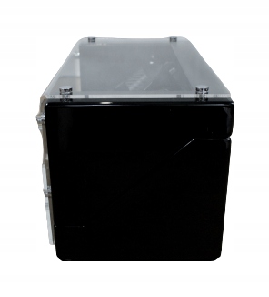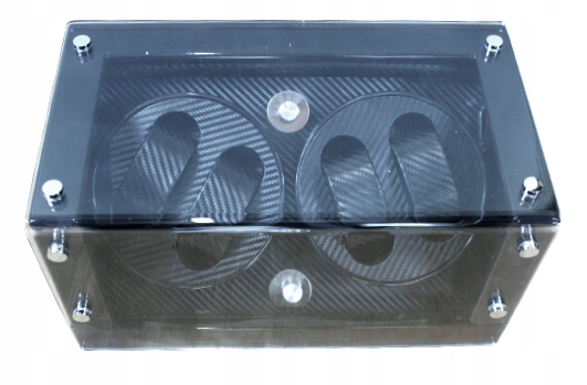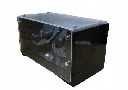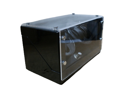 Корпус устройства ручной работы покрыт многослойным, черным и многократно полированным рояльным лаком. Большое окно без рам из акрилового стекла обеспечивает хороший обзор внутреннего пространства, тонкая карбоновая оптика которого тонко и элегантно отображает хранящиеся внутри часы.