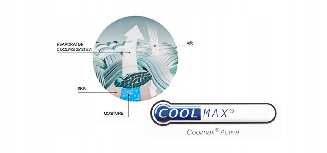 COOLMAX обеспечивает тепловой комфорт, воздухопроницаемость и превосходное отведение пота.