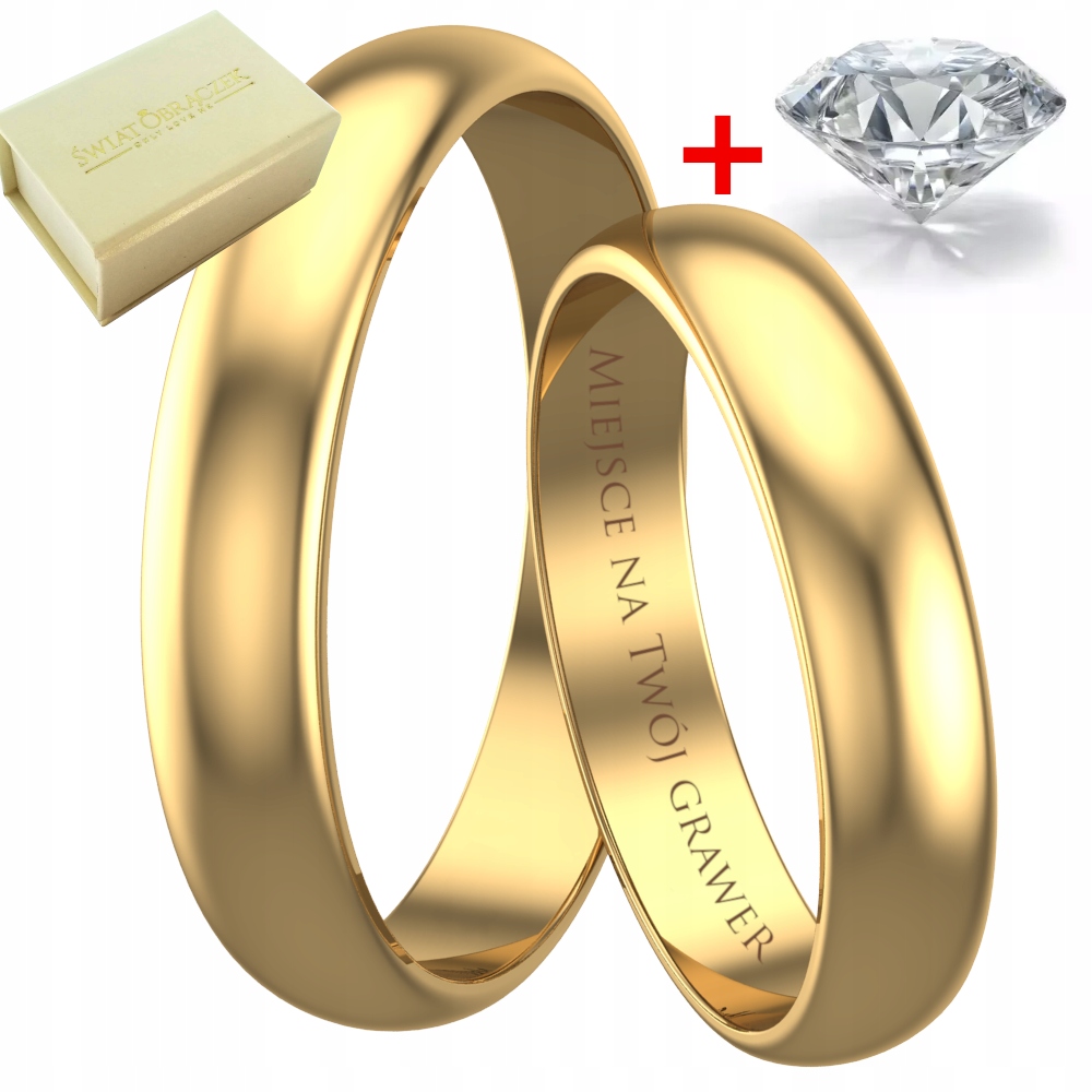 КЛАСИЧНІ ОБРУЧКИ З ЗОЛОТА 585 ПРОБИ, ПІВКРУГЛІ, 4 ММ + ДІАМАНТ Бонус !