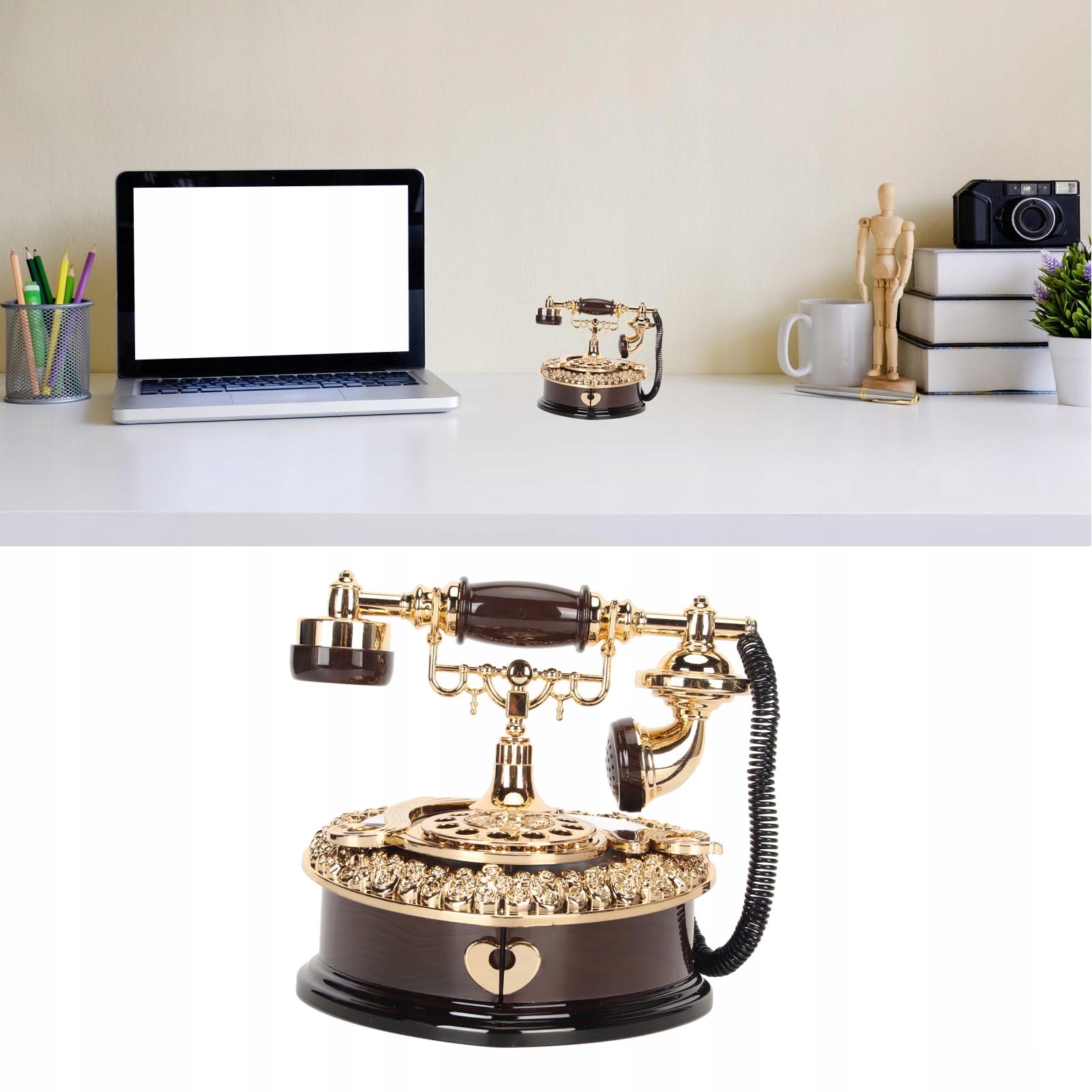 1. ИННОВАЦИОННЫЙ ДИЗАЙН: музыкальная шкатулка со старым инновационным дизайном телефона, яркое изображение, поднимите микрофон, будет играть замечательная музыка.