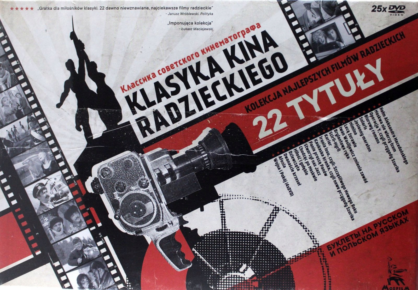 Смотрите коллекцию лучших советских фильмов, собранных вместе. Сборник состоит из 22 книг с фильмами на DVD. В нем собраны киноработы самых выдающихся и интересных творцов советского кино, таких как Георгий Данелия, Михаил Калатозов, Андрей Тарковский и Сергей Бондарчук.