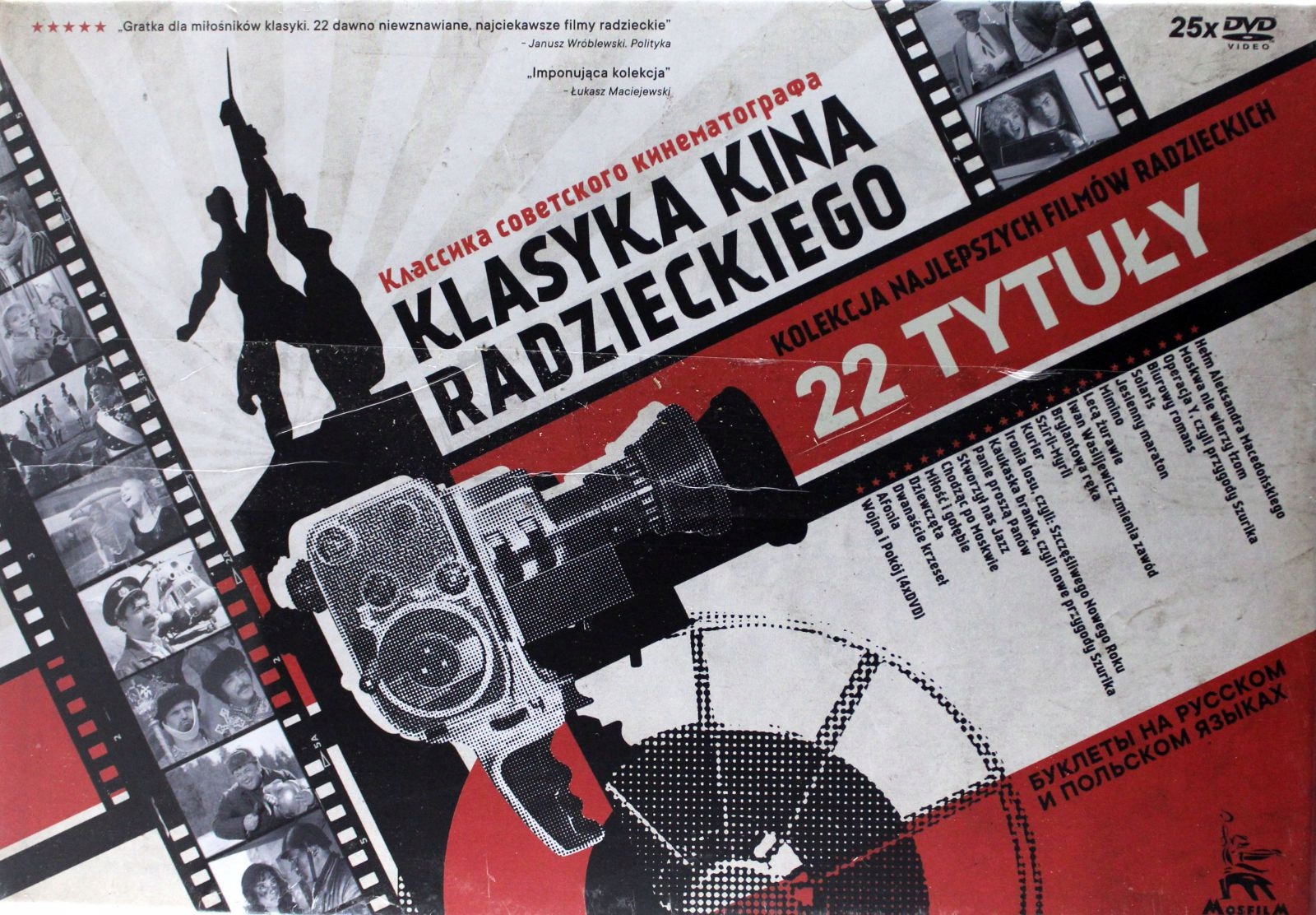 Смотрите коллекцию лучших советских фильмов, собранных вместе. Сборник состоит из 22 книг с фильмами на DVD. В нем собраны киноработы самых выдающихся и интересных творцов советского кино, таких как Георгий Данелия, Михаил Калатозов, Андрей Тарковский и Сергей Бондарчук.