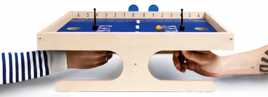 KLASK — уникальная, увлекательная и единственная в своем роде игра с использованием магнитов. Во время игры у нас одна цель: забить мяч в ворота соперника! У каждого игрока есть свой молоток, которым он управляет из-под доски с помощью специального магнита. Таким образом мы толкаем мяч, пока не наберем очко. Но будьте осторожны! Еще на столе есть ловушки в виде белых магнитов — если к вашему молотку прилипнет 2 или 3, противник получит ценное очко!