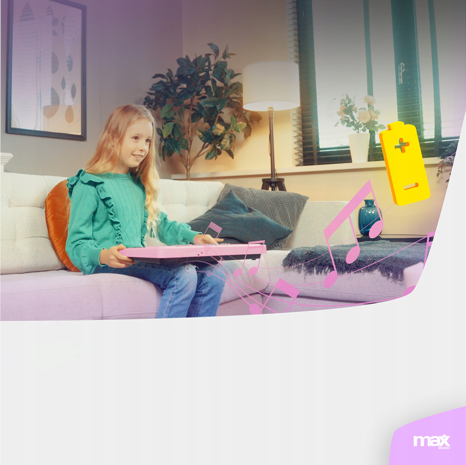С электронным пианино MAX KD54 каждый ребенок откроет для себя, как легко и приятно создавать музыку! Эта розовая клавиатура для детей создана для юных художников в возрасте от 5 до 12 лет и идеально подходит для обучения игре и развития творческих способностей.
