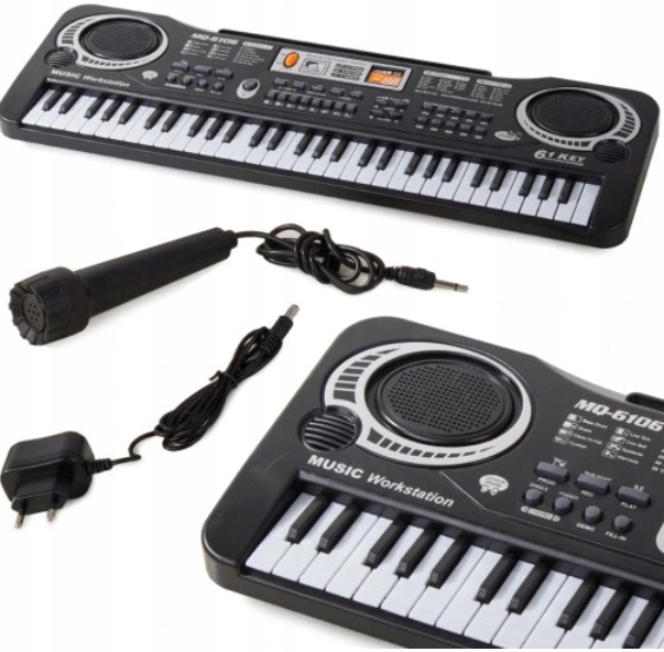Многофункциональный электронный орган! Они прекрасно развивают воображение, чувство ритма, музыкальные способности и слух, позволяют раскрыть в себе свое увлечение! Это идеальная альтернатива громоздкому большому пианино или роялю. Клавиатура позволяет пробудить вашу музыкальную страсть и творческую душу. С раннего возраста дети обращают внимание на различные звуки и быстро усваивают их, что стимулирует творческое мышление. Инструмент является одним из Мало что позволяет отслеживать такие параметры, как громкость, ритм, темп. Это идеальный подарок для ребенка, который подарит часы веселья среди сверстников. Практичный отсек для хранения в задней части клавиатуры позволяет удобно хранить блок питания. Входящий в комплект микрофон позволяет совмещать электронную музыку с пением вашего ребенка. b> Орган имеет микрофонный вход (входит в комплект). Клавиатура может питаться от блока питания (входит в комплект) или от батареек (4 батарейки типа АА – в комплект не входят).