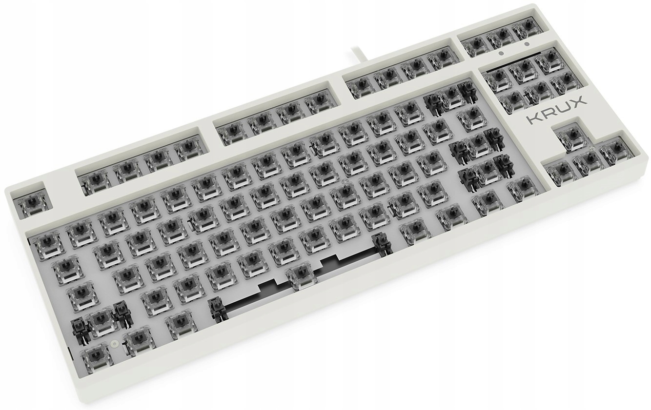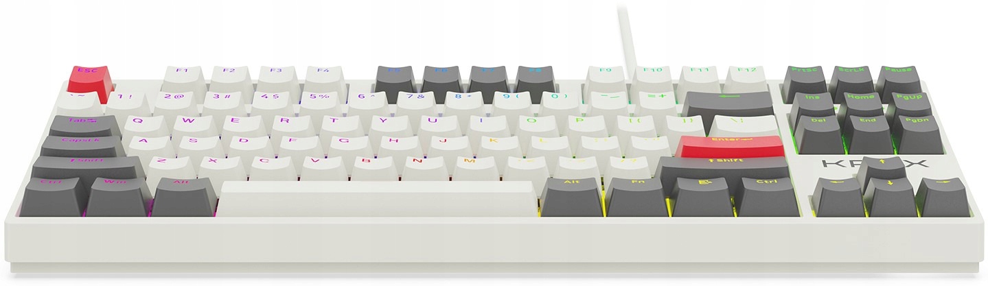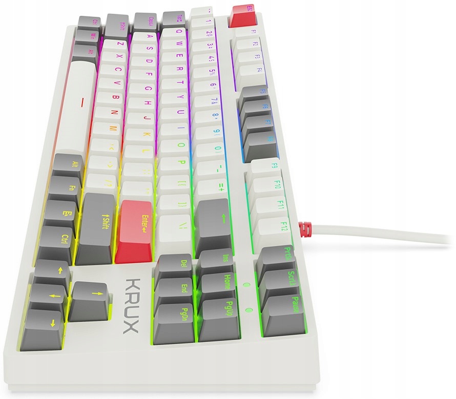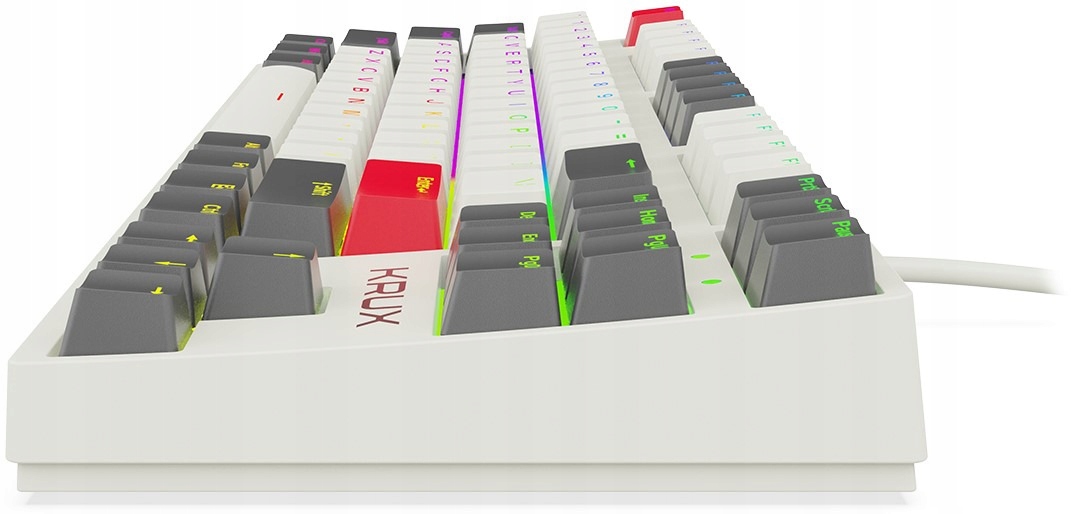 Современный и богатый интерьер — это не все, что отличает клавиатуру KRUX ATAX PRO RGB Creator Retro. Среди других он также выделяется благодаря необычному внешнему виду, стилизованному под ретро-клавиатуру. Несколько накладок выделены пластиком разного цвета, а вся клавиатура меняется с белой на светло-серую.
