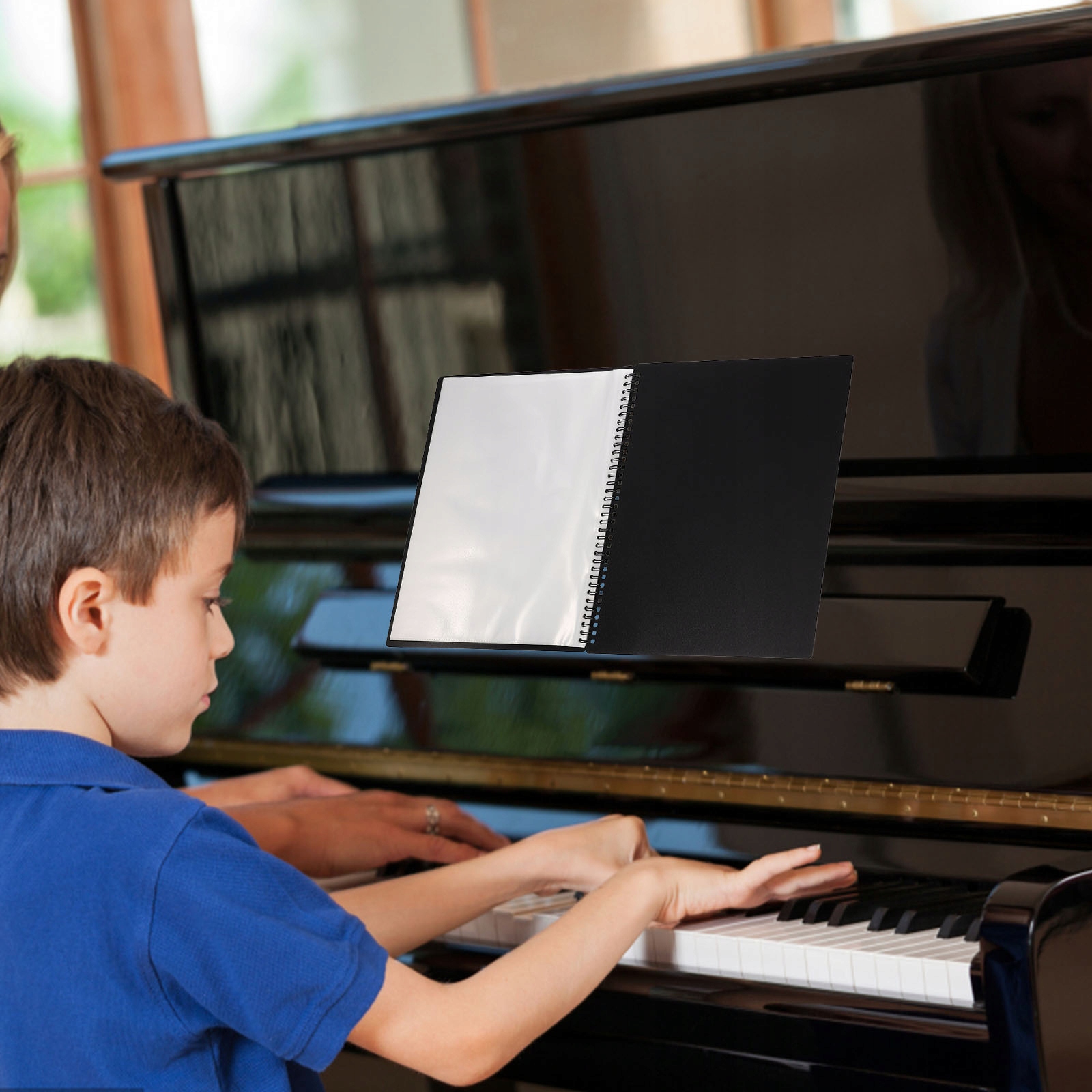 Стандартная папка для нот формата А4, легко заменяемая, с антибликовым покрытием и подходит для всех музыкальных инструментов.