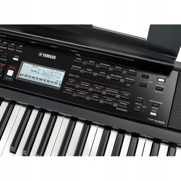 PSR-E383 — стандартная портативная модель клавиатуры с 61 клавишей не только для тех, кто впервые берет в руки клавиатуру, но даже для музыкантов, уже выступающих на сцене. Она оснащена универсальными функциями, выразительной сенсорной клавиатурой и множеством удобных функций, поэтому даже новички смогут сразу же насладиться игрой.