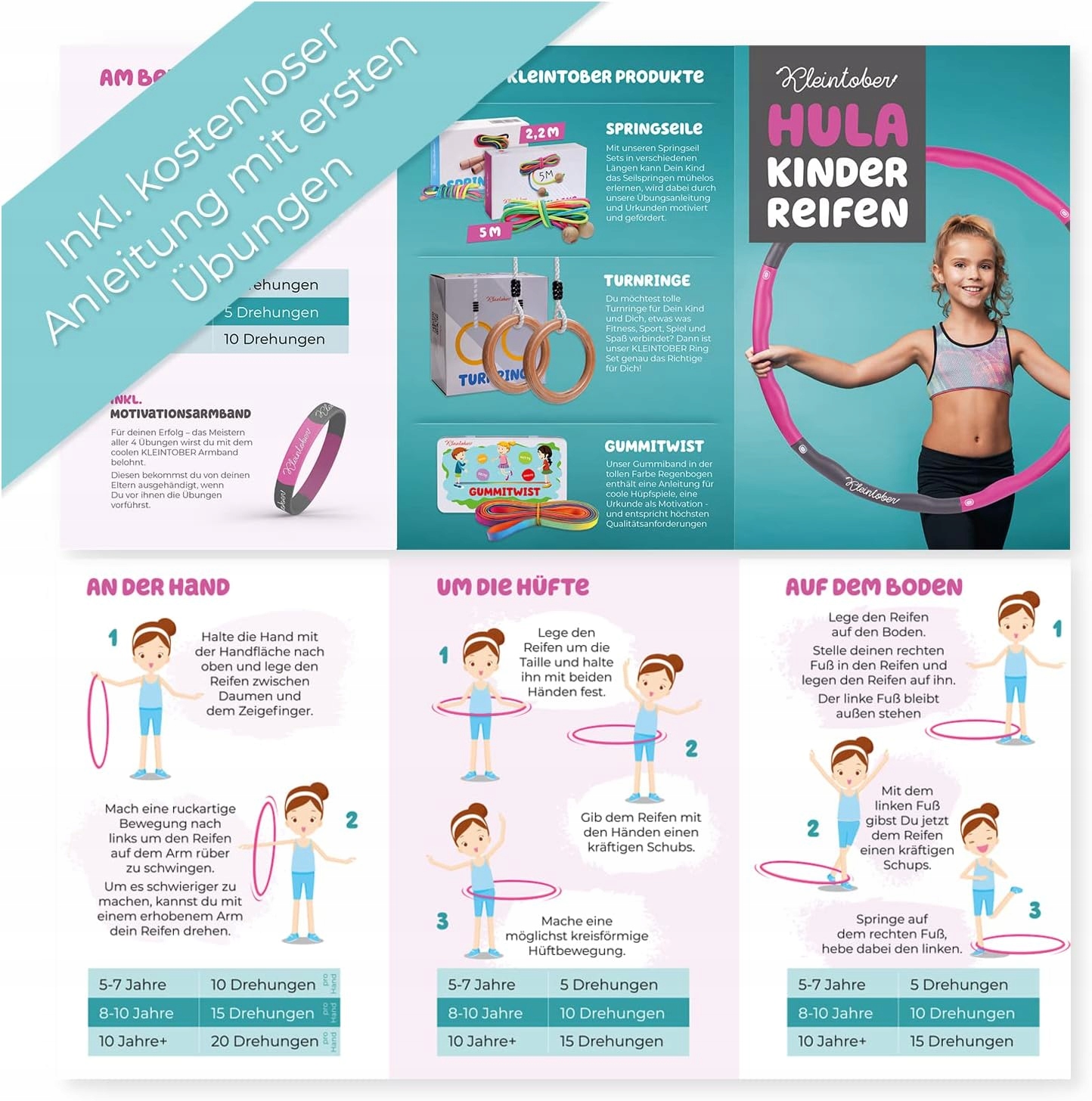 Необычный Хула Хуба: Вы ищете замечательный хула, который сочетает в себе спорт, игру и веселье? Если так, то наш гимназию Kleintber - это именно то, что вы ищете! В дополнение к высококачественным ободам, он содержит хорошие инструкции для 4 упражнений Hula и отличный мотивационный браслет. Благодаря этому, обод Hullahub станет незабываемым опытом и огромным удовольствием для детей и взрослых! Благодаря этому ваш ребенок, и вы станете идеальными чемпионами Rim