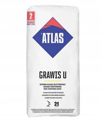 Клей предназначен для крепления теплоизоляционных плит из пенополистирола и создания армированного слоя в технологии утепления зданий. Позволяет склеивать пенополистирольные плиты (в том числе графитовые) и создавать армированный слой в технологии утепления зданий. ATLAS GRAWIS U производится в виде сухой смеси цементного вяжущего высочайшего качества, заполнителей и специально подобранных модификаторов.