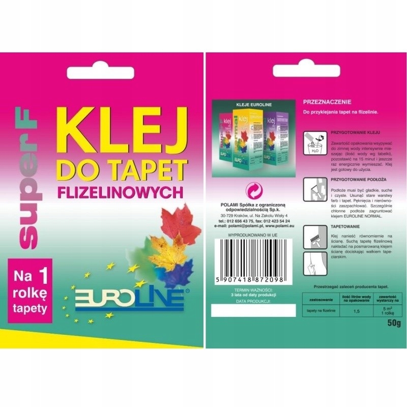 EUROLINE НЕПОЛЕВЫЕ ОБОИ КЛЕЙ 50г на 1 рулон обоев