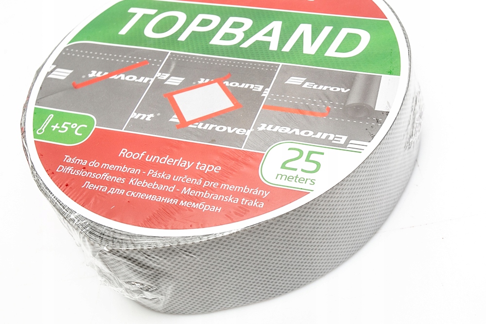Односторонняя лента для приклеивания и ремонта кровельной мембраны и других строительных изделий из полипропилена. Изготовленная из полипропиленового нетканого полотна и акрилового дисперсионного клея, лента дышит всей своей поверхностью, сохраняя тем самым паропроницаемость мембраны и защищая от влаги и ветра снаружи.