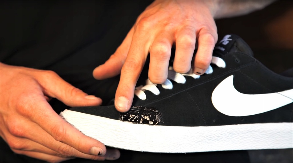 НОВАЯ ОБУВЬ Нанесите Shoe-Goo тонкими слоями и равномерно разгладьте поверхность. Огромные комки засохшего клея определенно не помогут вам, когда вы пытаетесь научиться трюкам.
